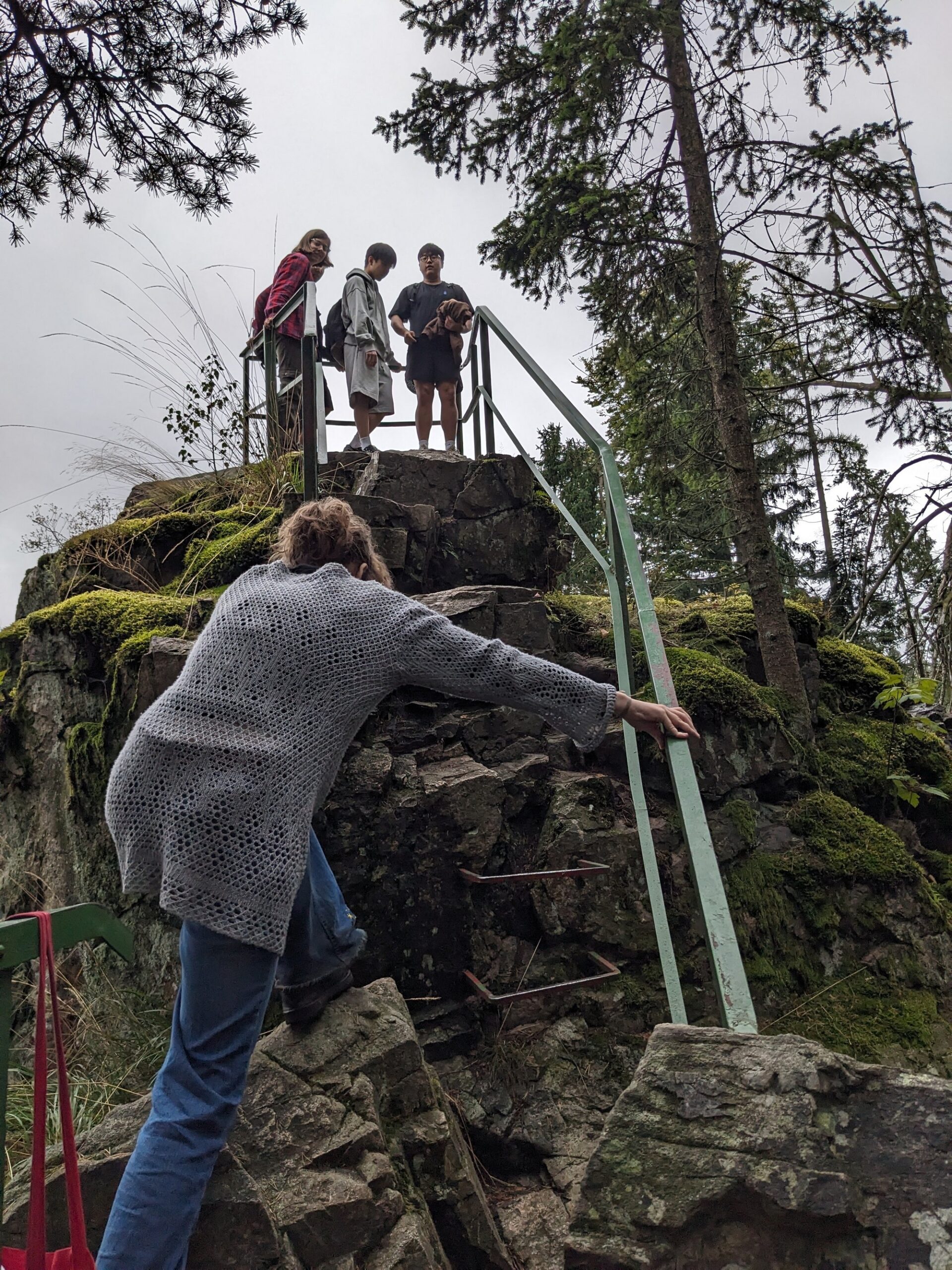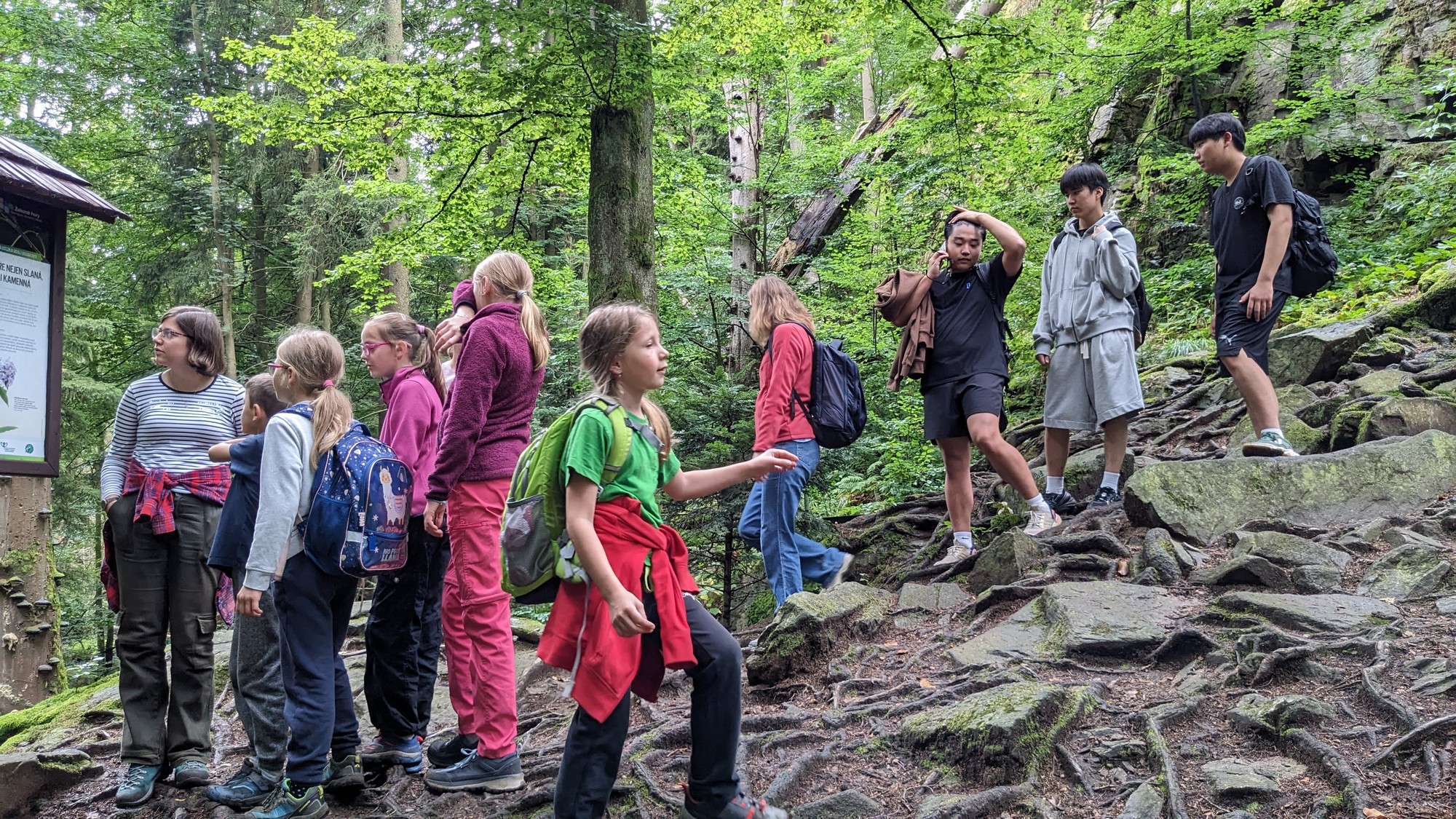 Jakmile jsme se v poledne sešli všichni, vyrazili jsme na výlet připravený Janem a Veronikou Šotolovými. Cílem byla vyhlídka Čertův stolek. Část cesty jsme šli po skupinkách, každá jinou trasou a pracovali na několika úkolech, jejichž výsledky uvidíte ve fotogalerii. Lukáš Kalina zůstal doma vařit a společnost mu dělalo několik seniorů a marodů, pro které by byl výlet moc náročný.