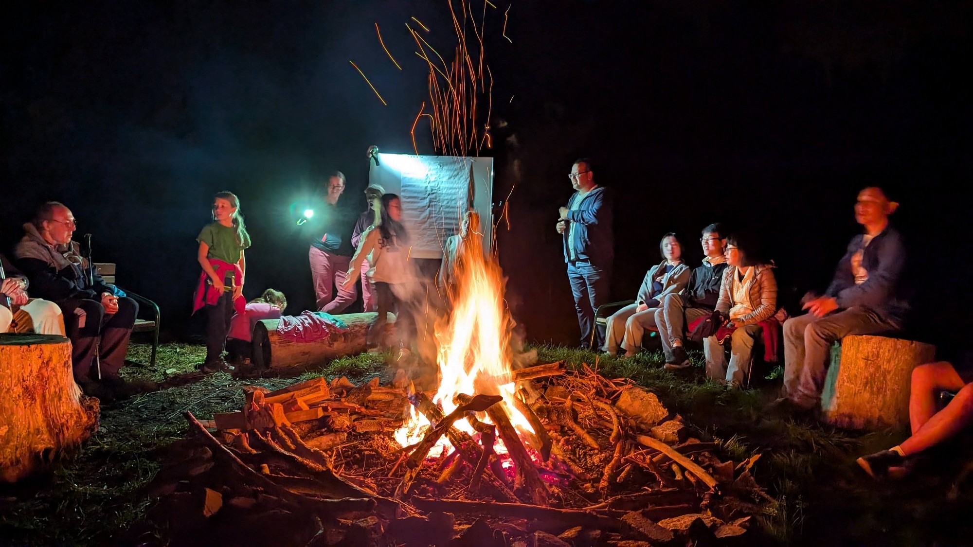 U ohně jsme si pod vedením Ondřeje Koláře a povídali o kořenech, kmeni a plodech našeho sboru. Pak došlo opět na zpívání, jen Korejci se přesunuli ke svému tradičnímu pojídání nudlí. Děti si mezitím dlouho do večera užívali temné louky a lesních živočichů, kteří se na louce občas objevili. Nutno poděkovat Lukášovi a několika jeho pomocníkům, kteří namísto sezení u ohně uklízeli kuchyň.
